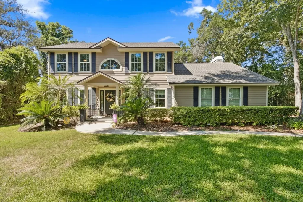 Located in the coveted gated 4811 Parkway community adjacent to the Ritz-Carlton Amelia Island and Golf Club of Amelia, this elegant 4-bedroom, 3.5-bathroom home offers resort-style living just a short walk from the Scott Road beach access. Inside, discover a flexible layout featuring two bedroom suites—one on the main level—and a dedicated office, formal living and dining rooms, a spacious great room, and an amazing Florida room addition with tons of natural light and it's own remote controlled, wall mounted HVAC split! The upgraded kitchen is a chef’s dream with premium appliances including a Viking refrigerator, Wolf electric oven with gas cooktop, and Bosch dishwasher and microwave. The downstairs master suite has a nice private bathroom and access to the rear deck. Tile and engineered hardwood floors flow throughout the home, adding durability and style. Enjoy seamless indoor-outdoor living with an expansive, covered rear deck overlooking a large, shaded, and private fenced backyard—perfect for entertaining. Additional gas hookups power a Generac whole-home generator, remote-operated fireplace, and backyard fire pit and grill. New roof 2024. tankless water heater, and water treatment system are additional nice features. Nestled in a tranquil, tree-lined neighborhood, this home offers luxury, privacy, and proximity to world-class golf, dining, and Amelia Island’s pristine beaches.