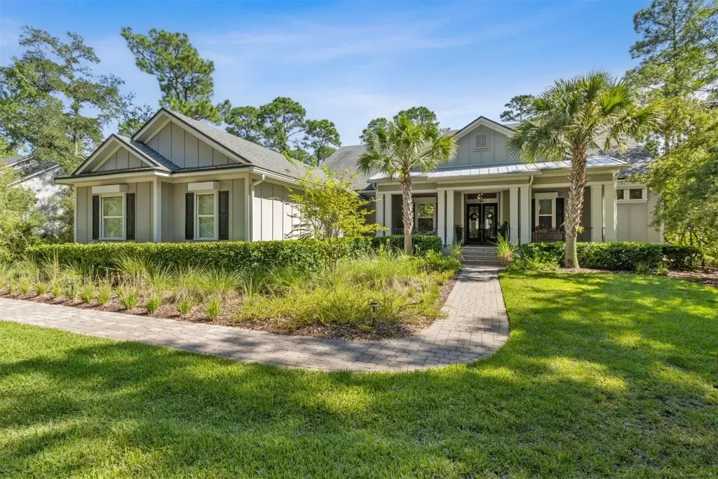 Built by Arthur Rutenberg Custom Homes, this stunning former model home offers the perfect blend of elegance, functionality, and serene privacy, located just minutes from the beaches of Amelia Island, top-rated schools, boutique shopping, dining, and the Jacksonville International Airport. Nestled in the exclusive gated Brady Point Preserve neighborhood of 76 one-acre+ estate lots, this home boasts a private marsh view and a spectacular resort-style heated pool. (New pool heater.) Enjoy evenings by the outdoor fire, cook up a feast in the summer kitchen, or relax under the covered patio. Inside, the open-concept floor plan features a rounded granite island that anchors the chef’s kitchen and flows seamlessly into the great room and breakfast area. New appliances include a combo wall oven, dishwasher and refrigerator. The cozy living room showcases picturesque views of the pool, backyard and marsh. The split bedroom plan creates a private master suite with ample closet space and spacious bathroom, double vanities, makeup counter, tub and walk-in shower. Two bedrooms with ensuite baths and walk-in closets plus a separate den facing the tree-filled backyard provide plenty of room for family or guests. Other features of the home include, hurricane shutters, a whole-house generator, irrigation well, blinds, and installed gallery lighting. The third garage bay provides additional parking or space for hobbies. Don't miss this rare opportunity to own a home where luxury, privacy, and convenience converge. Pool and lanai furniture are included.