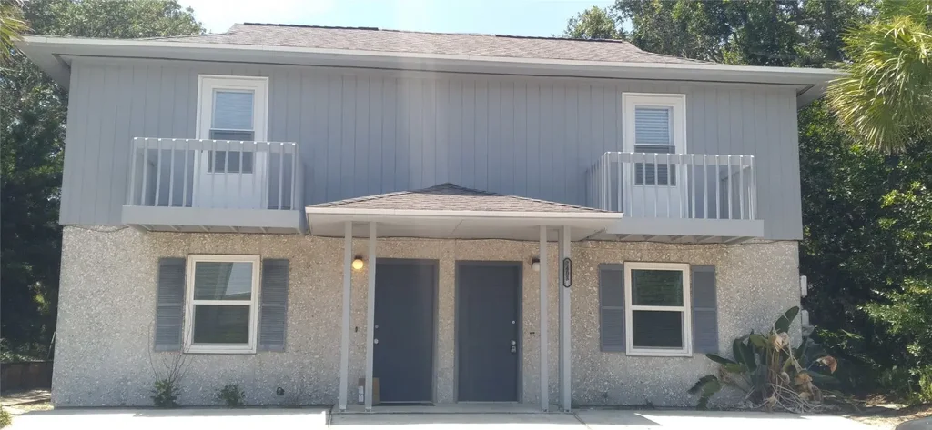 Beach Days! This spacious two level two bedroom duplex located on First Avenue is just one block form the beach and is ready for move in. First floor features large living room with wall to wall carpet, half bath, breakfast area and spacious kitchen. Sliding glass door opens to a rear patio and back yard area with deck. Second floor features hardwood floors, bright bedrooms with ample closet space and a balcony off the front bedroom with full bath with double sinks and stacked washer and dryer.