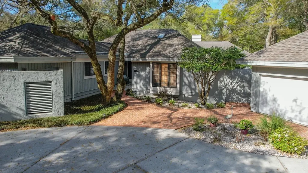 This 5 bedroom, 4.5 bath contemporary home offers 2,758 sq ft of unique living space situated on a large 17,424 sq. ft. wooded lot on the east side of the gated Omni Amelia Island Resort community. Tucked away on a quiet residential cul-de-sac street, this elegant retreat — set on a rare double lot — offers the perfect balance of privacy and convenience. Just a five-minute stroll brings you to an award-winning beach, with the world-class amenities of the Omni Amelia Island Hotel only steps away. The home features four generously sized en-suite bedrooms with full baths, all thoughtfully located on the main level for comfort, privacy and ease. Upstairs, the fifth bedroom is a spacious loft with its own half bath provides a perfect hideaway for children or guests. Designed with entertaining in mind, the residence showcases an open living area with wood burning fireplace and a stunning two-story exposed beam ceiling. The living room opens to an expansive main deck with a built-in gas line, complemented by two additional private decks and a large screened-in porch embraced by lush palmettos and majestic oak trees. Completing the property, an oversized two-car garage with a dedicated golf cart space ensures every detail of convenience is met — offering ease of access to the very best of the community amenities.