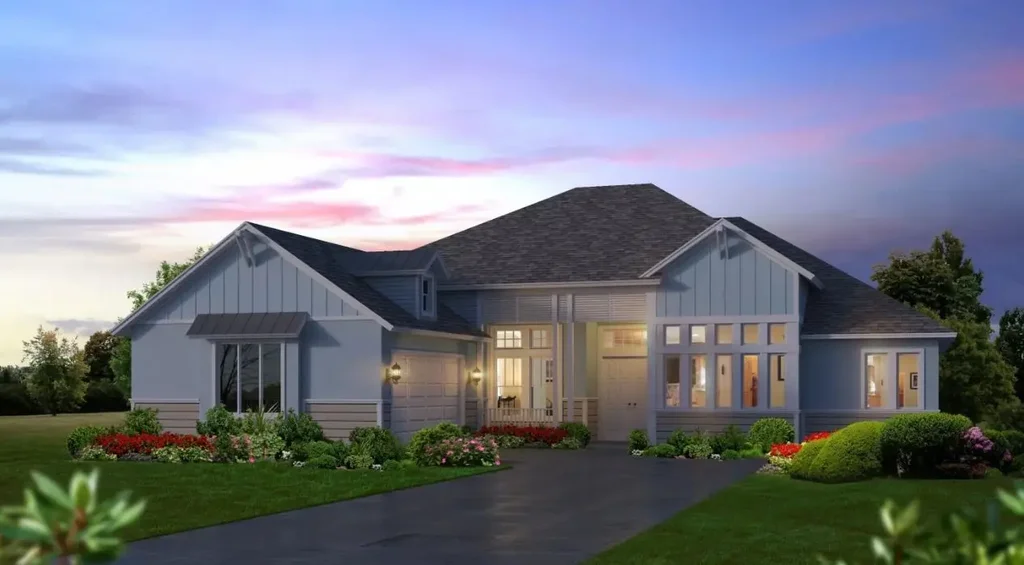 The Egret II is an elegantly designed 2,969-square-foot home that offers luxurious single-story living with a thoughtful layout perfect for relaxation and entertainment. With three bedrooms, three baths, a private study, and a spacious two-car garage, this floor plan is ideal for those who appreciate refined design and functional spaces. As you enter through the grand foyer, a beautiful dining room to one side and a private study with an arched window to the other create a welcoming atmosphere that sets the tone for the rest of the home.